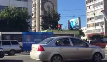ПідписатисяЗ незрозумілих причин невідомий заліз на дах автобуса. Водій транспортного засобу спробував зняти неадекватного пасажира, але між ними зав'язалася бійка.