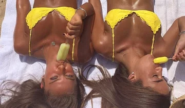 ПідписатисяНа фотографіях видно, що дівчата зі спокусливими формами намагаються врятуватись від пекучого сонця.