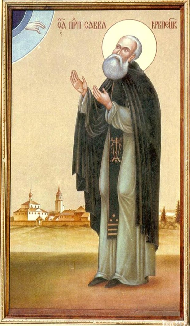 З відкритих джерел відомо, що святий Сава Крипецький, або Псковський, жив у 15 столітті. Після того, як він прийняв чернечий постриг у Афоні, він відправився в Псков і оселився неподалік від міста, у відокремленій Крипецькій пустелі. Сава дотримувався суворого посту, а весь вільний час проводив у молитвах. До нього часто приходили прості люди за слушною порадою і благословенням.