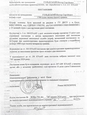 А именно не уплатил штраф за нарушение установленного порядка военного учета, что является прямым нарушением закона в условиях полномасштабной войны.