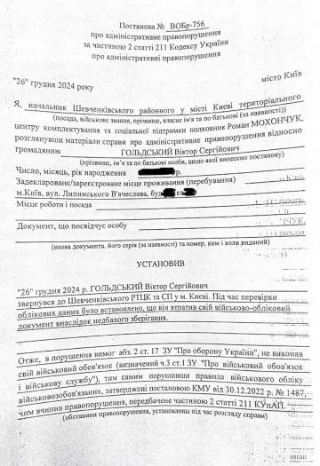 Как стало известно редакции UA.News, Виктор Гольдский, известный по мошенническим схемам завладения жильем малообеспеченных и социально незащищенных жителей столицы, сам испытывает проблемы с Территориальным центром комплектования (ТЦК).