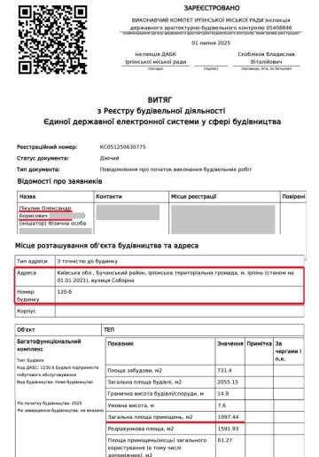 Одним из крупнейших застройщиков Ирпеня, Пикуликом Александром Борисовичем, была найдена подставная личность, имеющая регистрацию в общежитии в селе Гущинцы Винницкой области - Ткачука Сергея Владимировича.