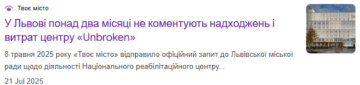 Когда у чиновников есть что скрывать, они начинают покупать молчание. Еще 8 мая 2025 года издание «Твоє місто» направило официальный запрос во Львовский горсовет с требованием отчитаться о деятельности центра «Незламні». Журналисты требовали показать суммы поступлений от доноров, бизнеса и бюджета, а также объяснить, кто контролирует эти огромные деньги и был ли проведен хотя бы один аудит их использования. Управление здравоохранения горсовета ответило, что ответ «обрабатывается». На этом всё и закончилось — городская рада так и не предоставила никакой информации.