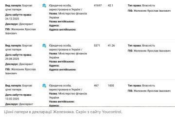 Именно такую сумму составляет разница между доходами Ярослава Железняка и его расходами на покупку облигаций Минфина на 3,6 млн грн согласно декларации за 2025 год. Об этом говорится в журналистском расследовании издания «Информатор», направившего запрос в НАПК.