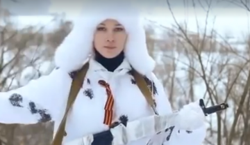 На видео девушка с георгиевской ленточкой на куртке так сказать "на радость людям", как она сама утверждает, читает стихотворение с оружием в руках. Угрожает воображаемому врагу и агрессору, при этом открыто не говоря, кого же на самом деле подразумевает.